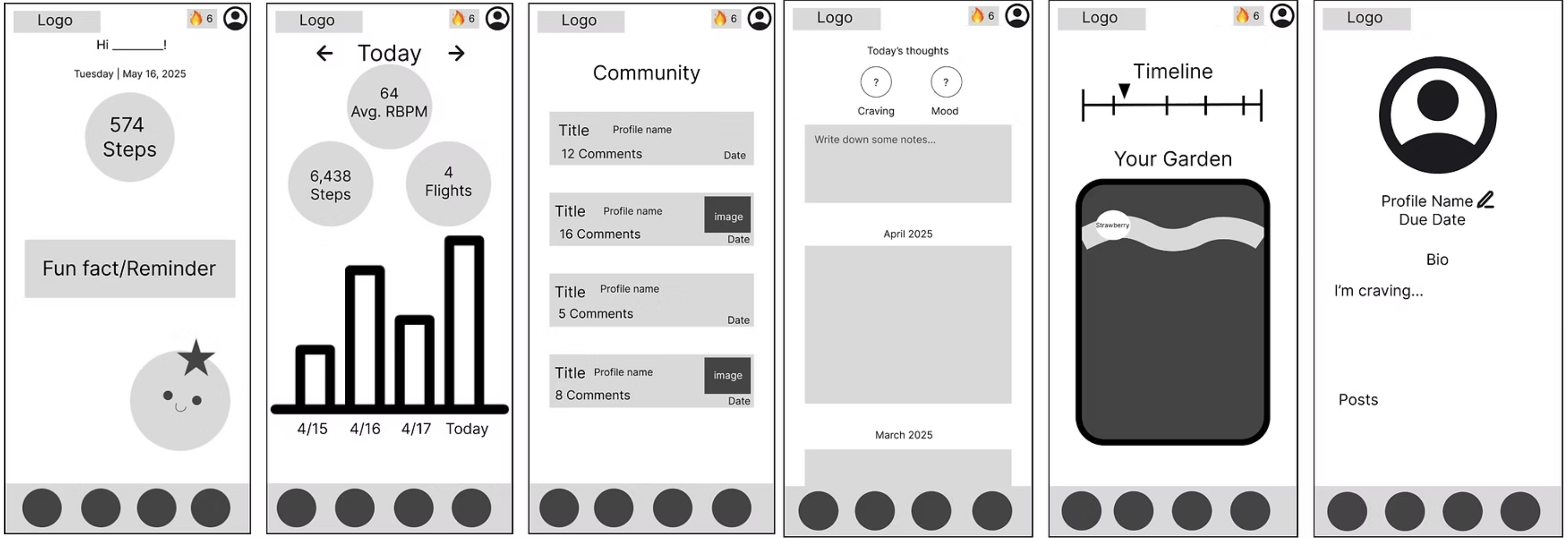 Our team approached this project by narrowing down a distinctive user group, so that we could be specific and thorough with our research to develop features that address unique problems. After brainstorming on groups that may have particular fitness restrictions, we decided to focus our project on pregnant women and their health.