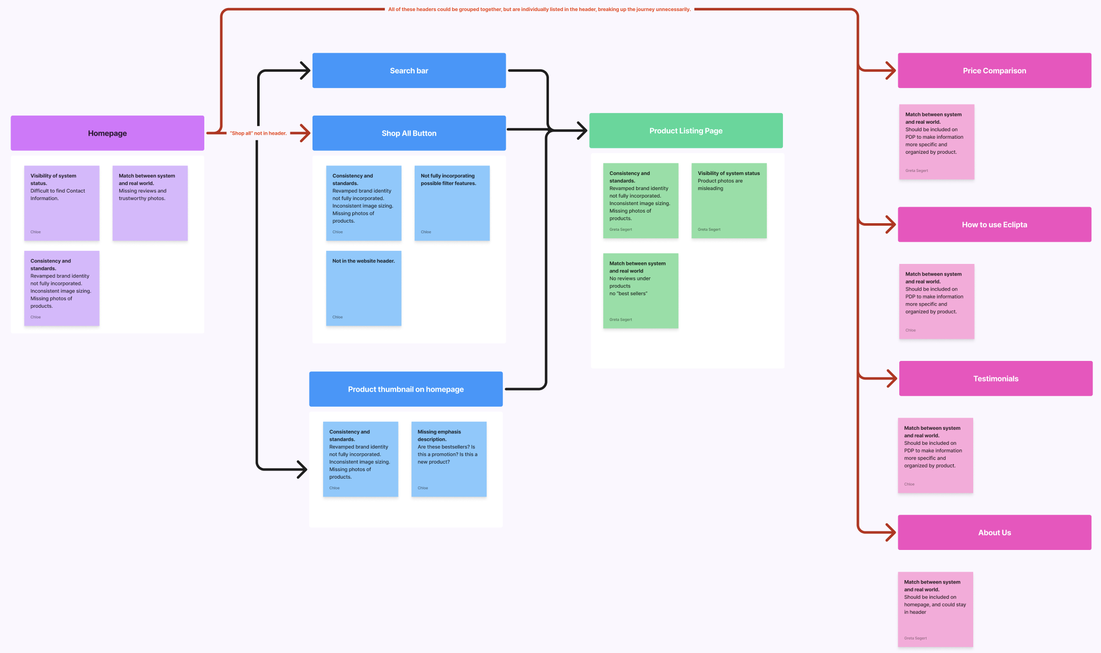 We conducted a heuristic evaluation to assess the usability and user experience of the Eclipta Homepage and PLP. This process helps ensure that Eclipta provides a more intuitive, efficient, and user-friendly experience.